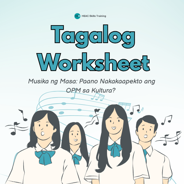 This Tagalog Worksheet – Musika ng Masa: Paano Nakakaapekto ang OPM sa Kultura? encourages learners to explore how Original Pilipino Music (OPM) reflects and influences Filipino culture. Through creative and reflective activities, students examine how music expresses identity, emotions, and social values in the lives of Filipinos.